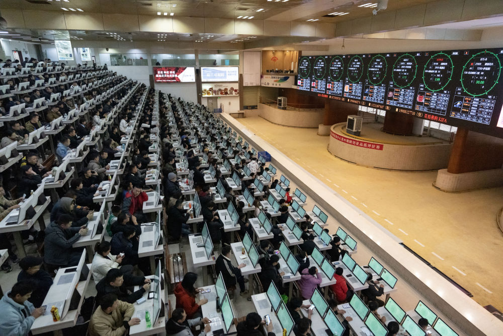 这是2025年1月22日拍摄的昆明国际花卉拍卖交易中心拍卖大厅,拍手们在竞拍鲜花。新华社记者 陈欣波 摄