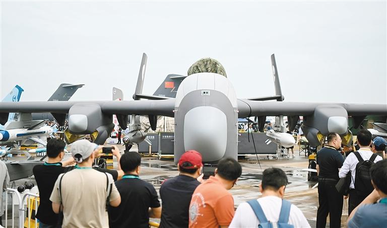 察打一体无人机“九天”是一款可灵活配置的重型无人机,翼展达25米,最大起飞重量16吨,最大载荷能力6吨,配备可快速更换的重载任务舱和8个外挂点,通过换装不同模块化任务载荷,可满足空运空投、信息支援与对抗、火力打击与支援等任务需求,并且可进行地质勘探等勘测任务,在民用物资投送,特别是在抢险救灾等应急环境下能够发挥重要作用。(记者 李欣怡)