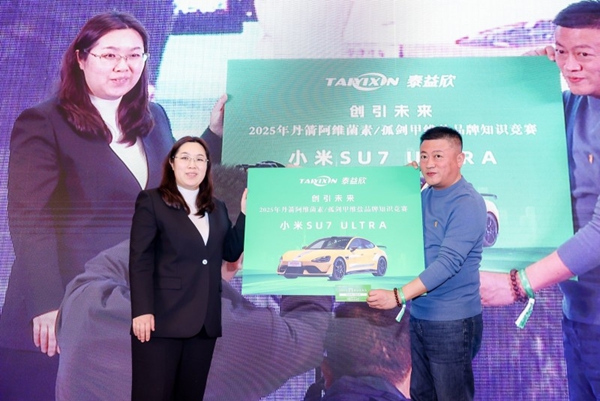 发布会已圆满落幕,随后进行了媒体采访、自由摄影以及鸡尾酒会等活动,为与会者提供了一个充分的交流与互动平台。当晚,一场盛大的晚宴顺利举行,通过《品牌知识竞赛抽取神秘大奖》活动,进一步加深了与会各方对泰益欣品牌的认识与理解。在知识竞赛中确定了抽奖嘉宾,并以公平、公正、透明的方式抽取了神秘大奖。最终,南京嘉绿化工有限公司荣获了神秘大奖——价值529900元的小米su7ultra汽车一辆。