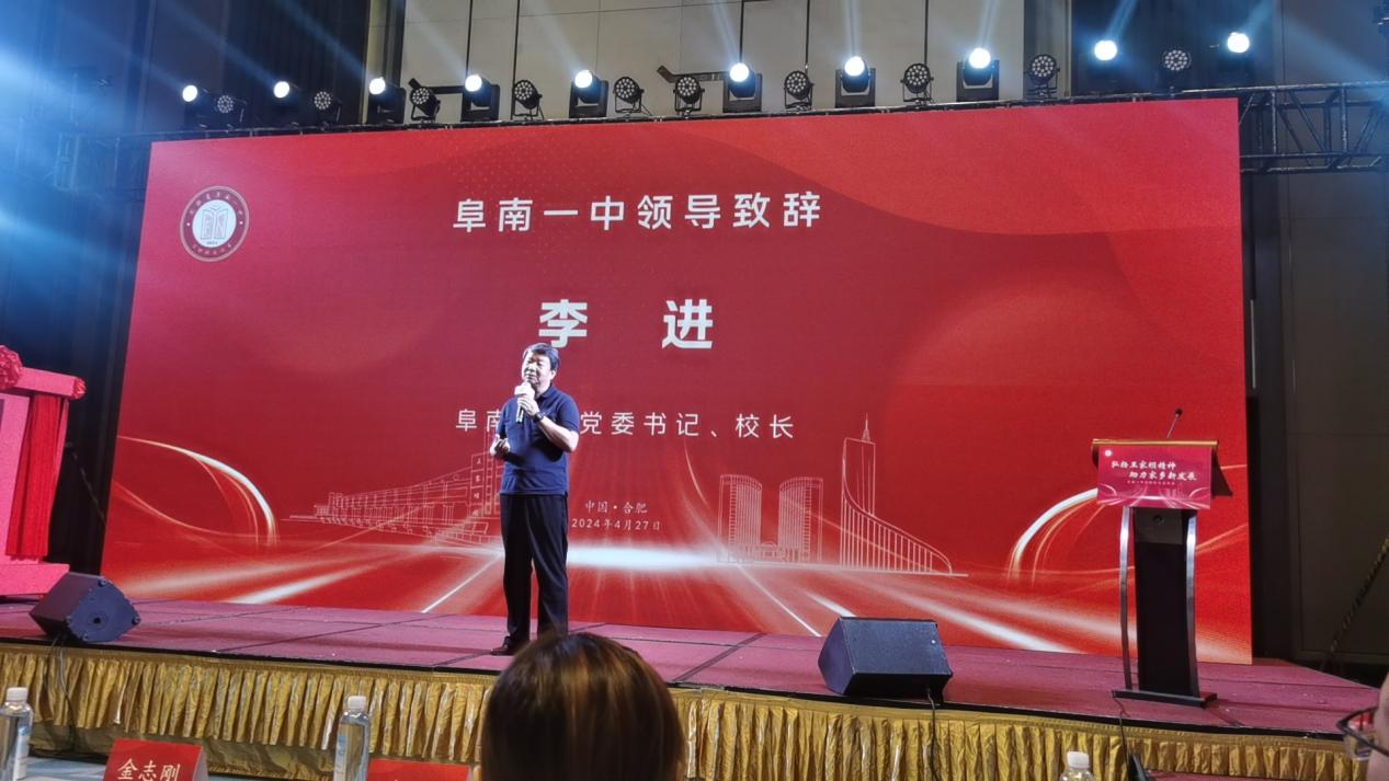 李进代表学校党委向弘扬王家坝精神助力家乡新发展座谈会暨阜南一中在肥校友人才交流会的成功举办表示热烈的祝贺,对各位校友在百忙之中抽出时间来参加交流会表示由衷的感谢。李进表示,近年来在县委、县政府的正确领导下,在县委教育工委的大力支持下,学校以立德树人、办好人民满意的教育为根本,坚持“五育”并举,不断提升教育水平和办学质量。希望各位校友加强联络,相互交流,在各自的岗位上发挥聪明才智干好工作,服务国家发展战略,替母校争光,为家乡添彩。