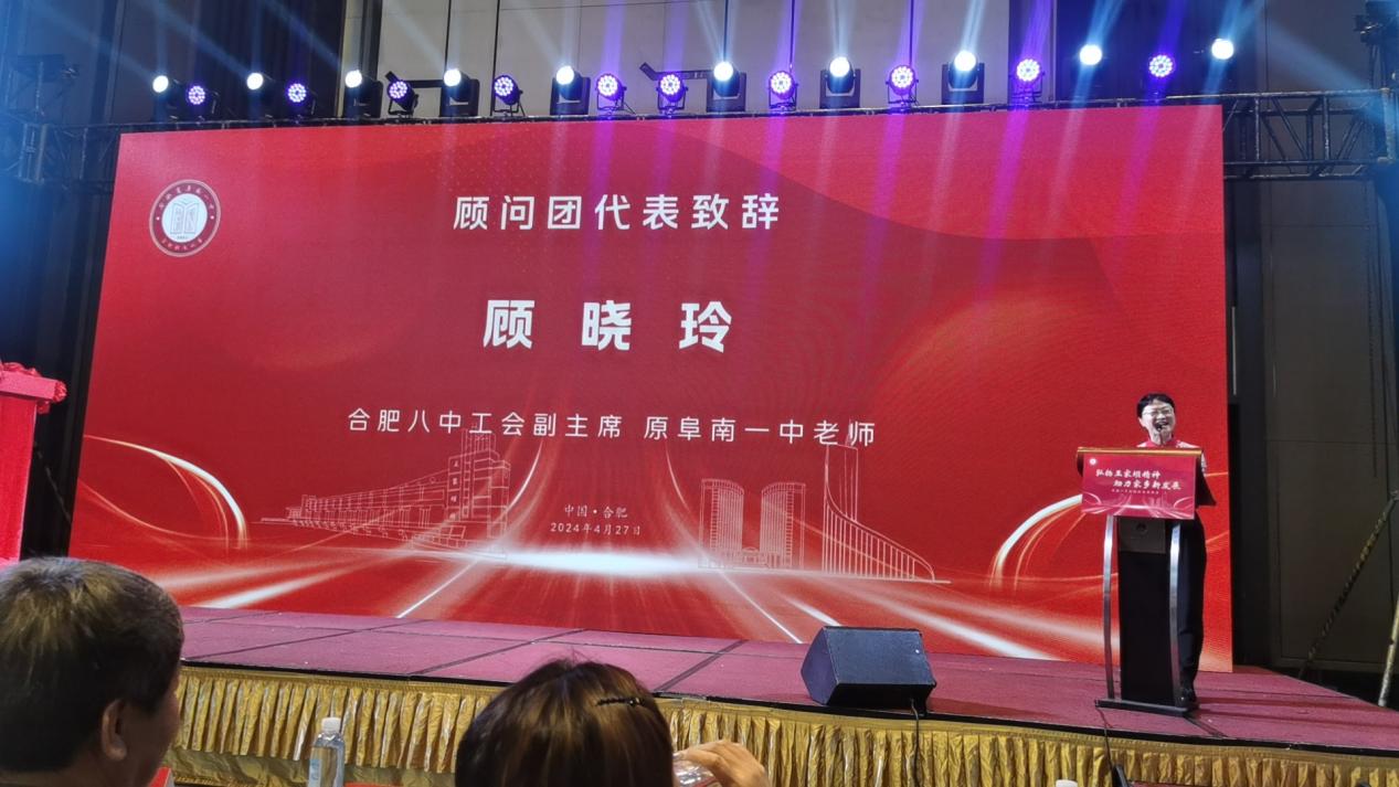 合肥八中工会副主席、原阜南一中老师顾晓玲,北京校友代表、北京炜衡律师事务所高级合伙人岳见山,97届上海校友代表、汇业律师事务所管理委员会委员周开畅,97届广州校友代表、广东辰通贸易总经理郭磊分别作交流发言。