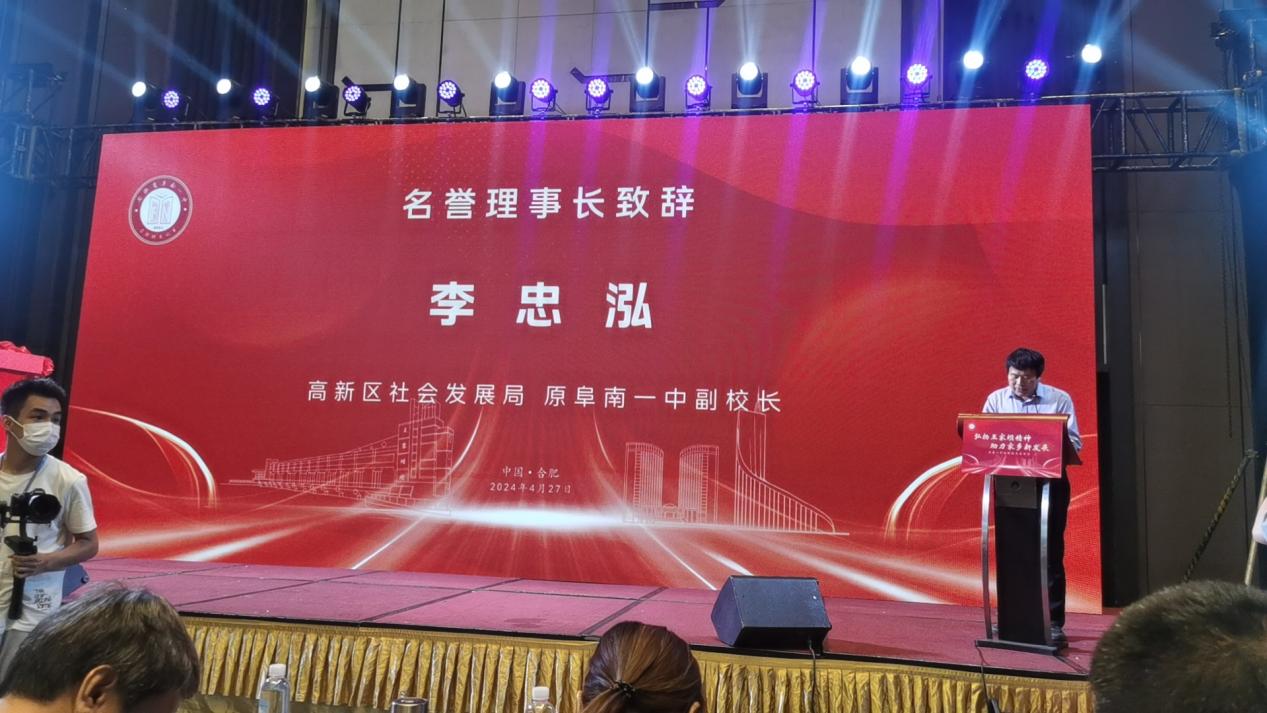 合肥高新区社会发展局、原一中副校长、名义理事长李忠泓代表校友之家33位理事详细阐述合肥校友之家成立的初衷和宗旨。作为连接母校与广大校友的重要桥梁和纽带,旨在建立一个信息交流、资源共享、互帮互助、共同进步的良好平台。共叙同窗之情,相互交流、共话发展。