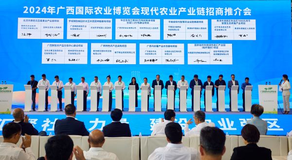 中国报道讯(王恒 报道)11月8日,2024年广西现代农业产业链招商推介会(以下简称“推介会”)在南宁国际会展中心举行。此次推介会是2024年广西国际农业博览会系列活动之一,由广西壮族自治区农业农村厅与全国工商联农业产业商会主办。